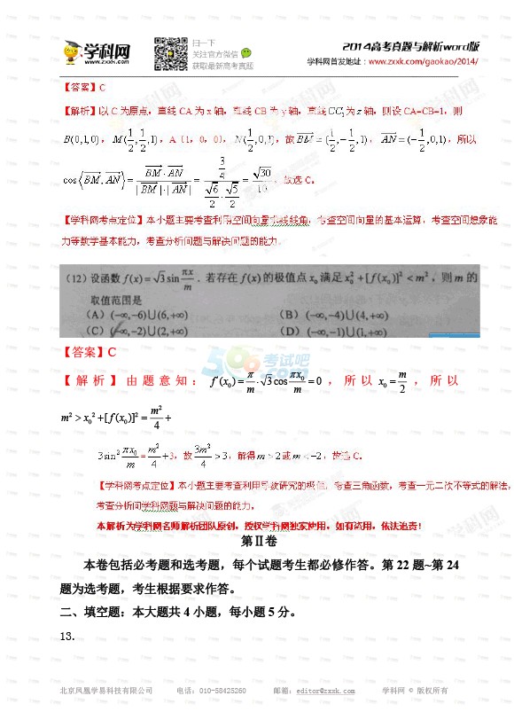 2014年北京高考理数答案及解析(完整版)