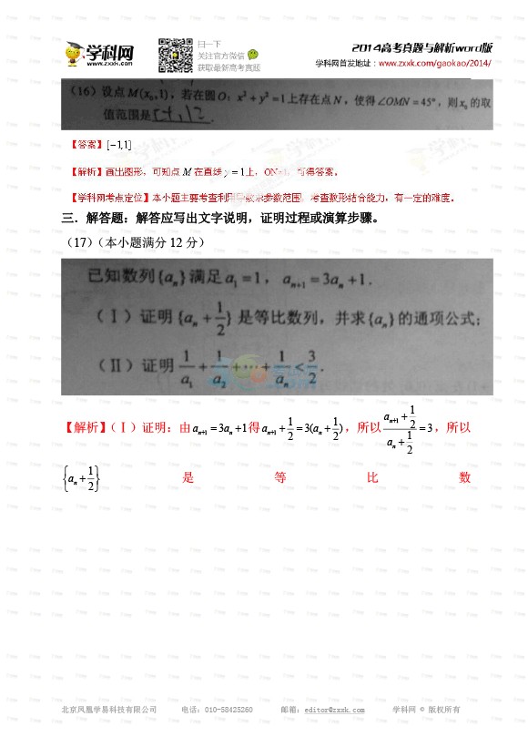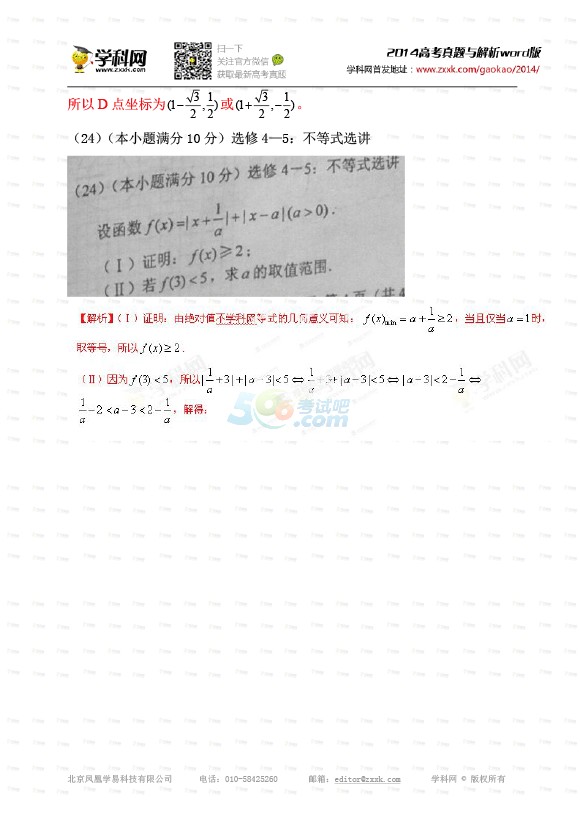 2014年安徽高考数学试题及答案(理科)
