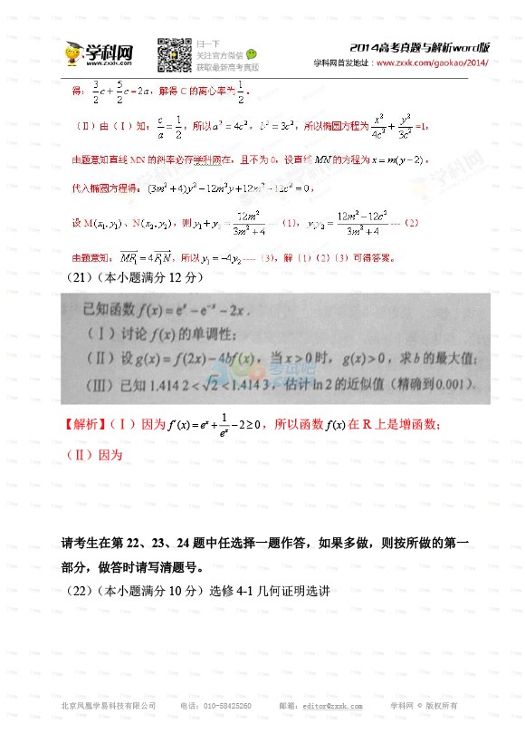 2014年辽宁高考数学试题及答案(文科完整)