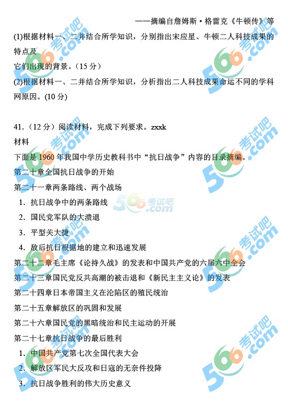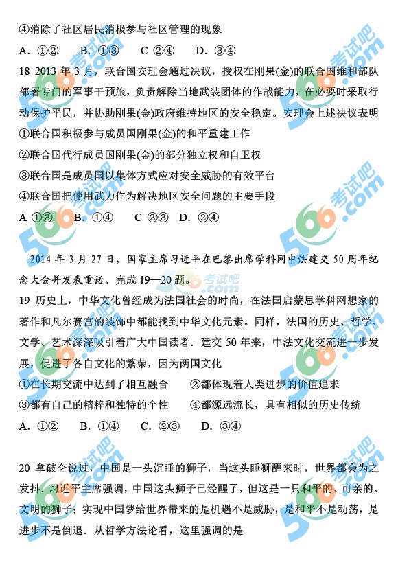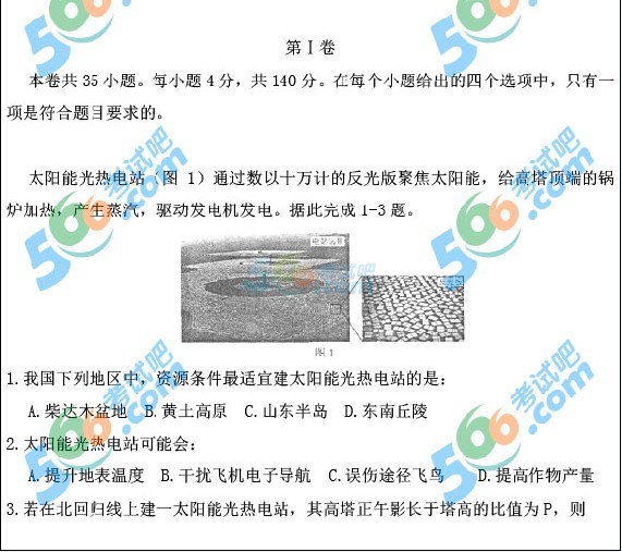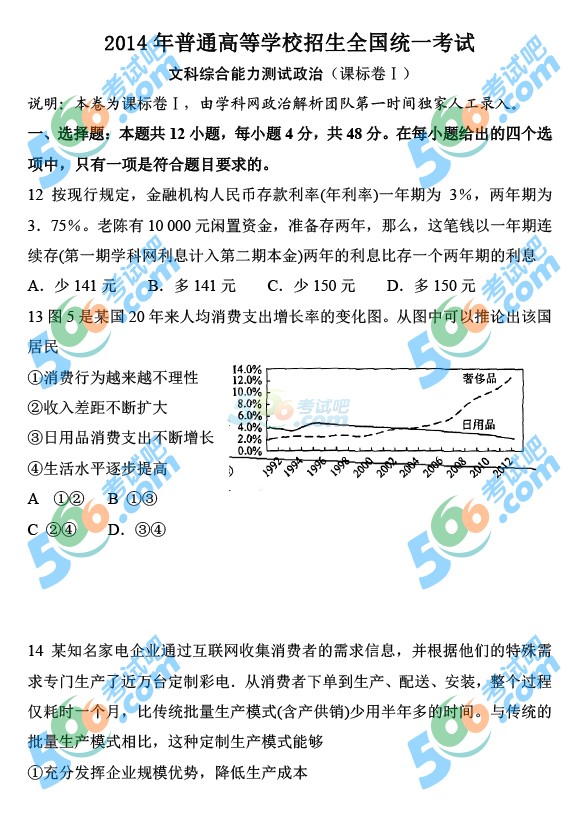 2014年高考新课标I文综试题(完整清晰版)