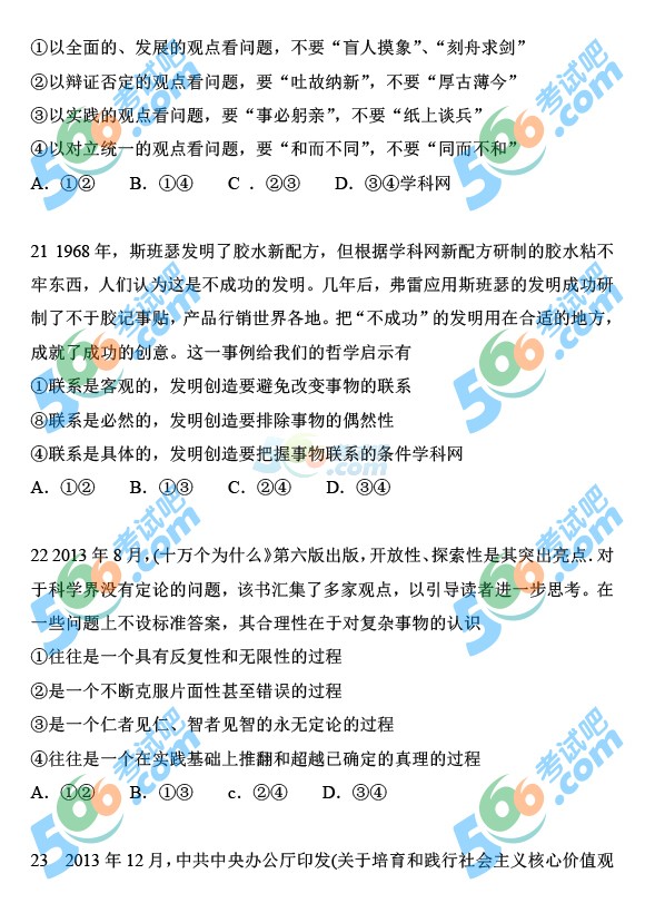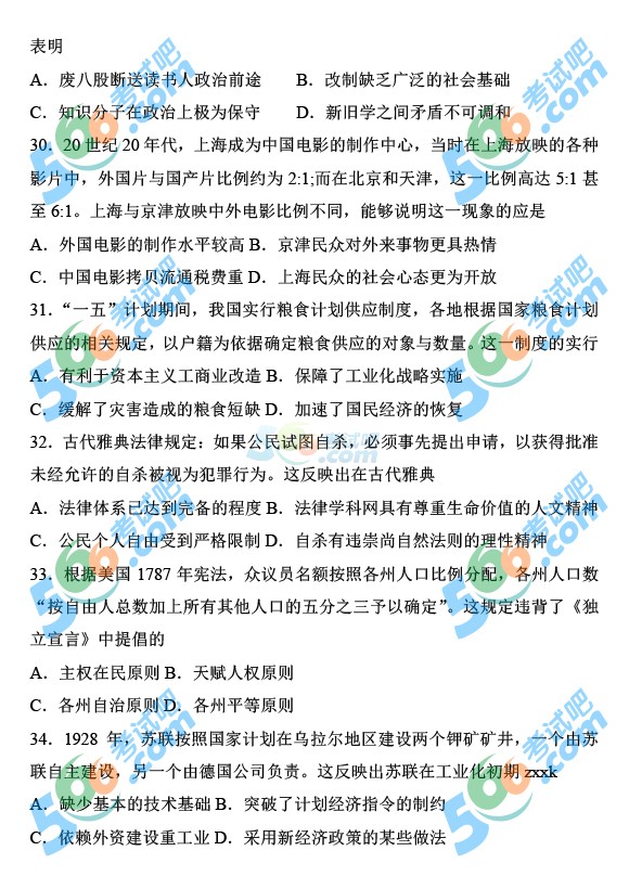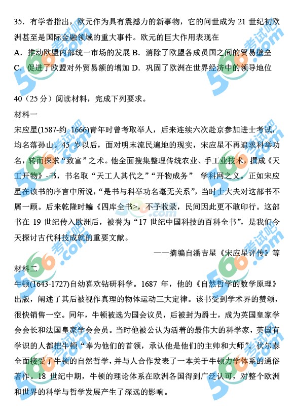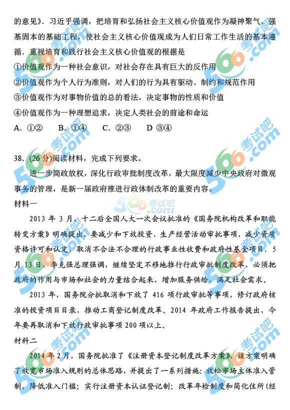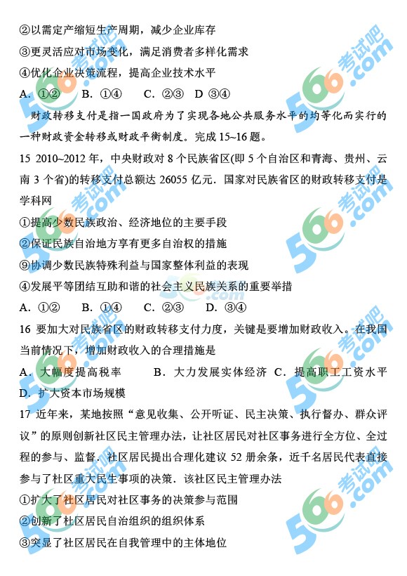 2014年高考新课标II文综试题(完整清晰版)