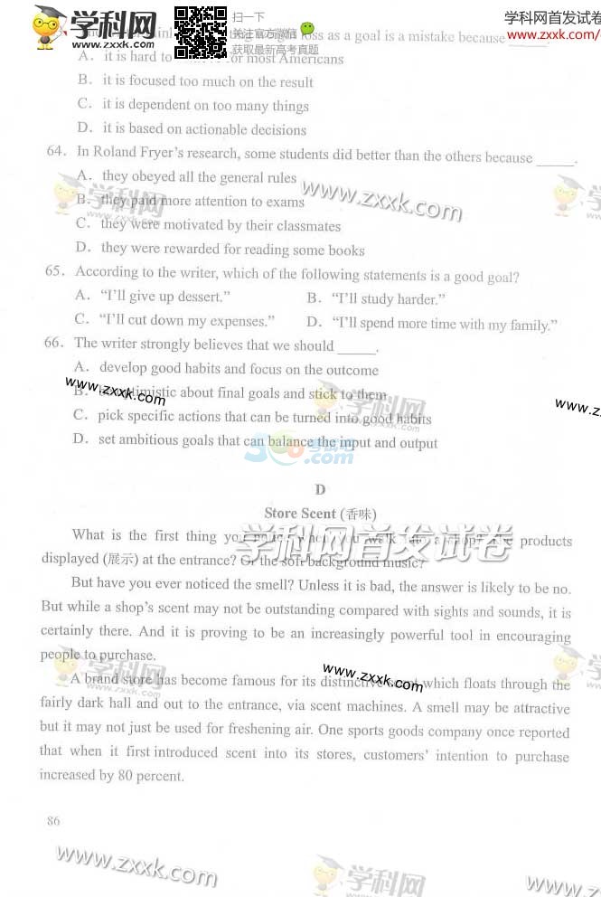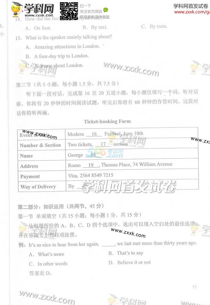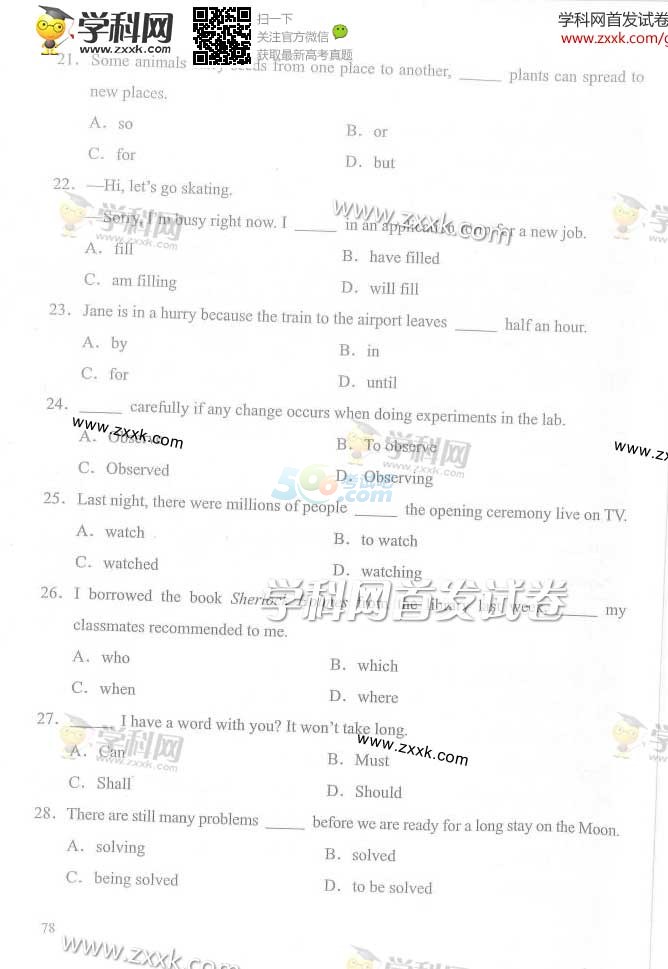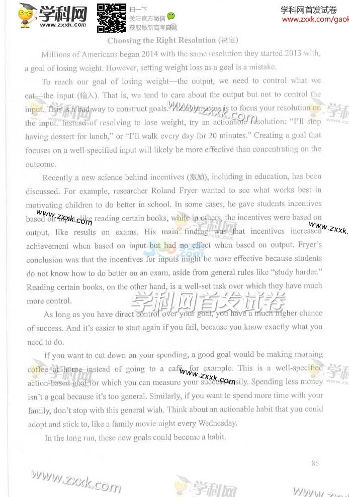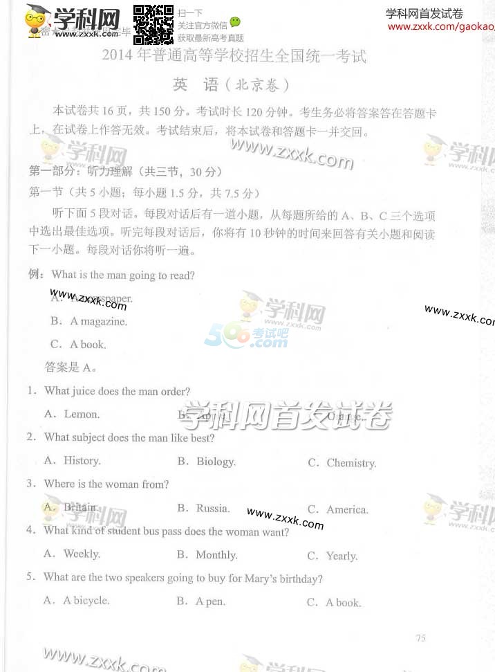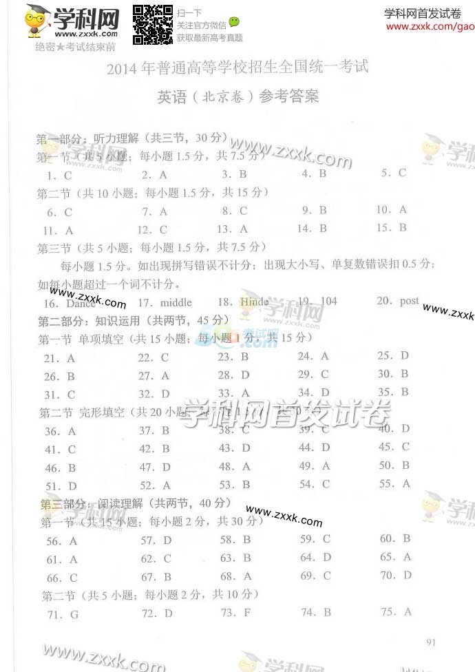 2014年北京高考英语试题及答案(完整版)