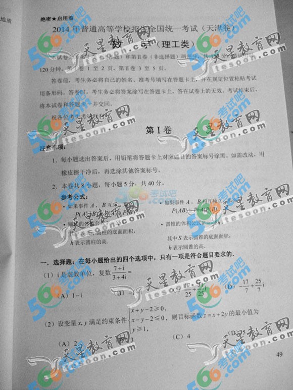 2014年天津高考数学试题及答案(理科)