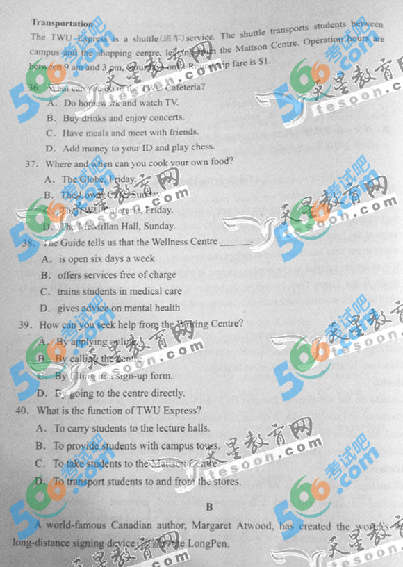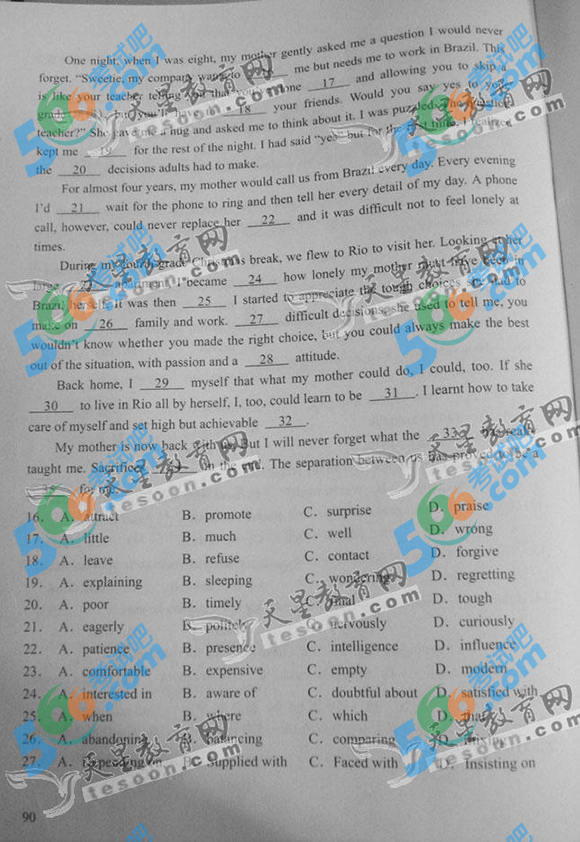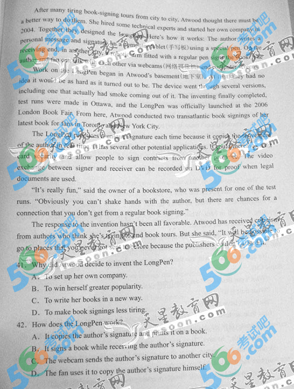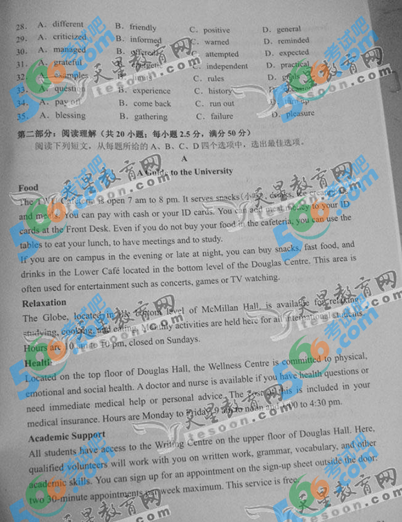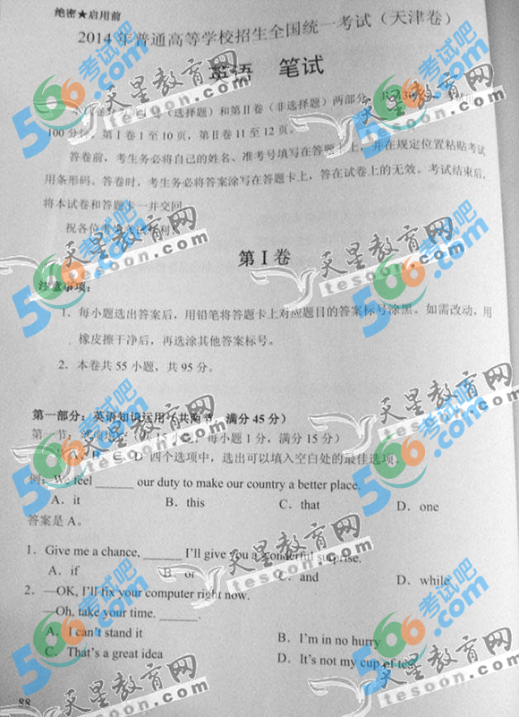 2014年天津高考英语试题及答案(完整)