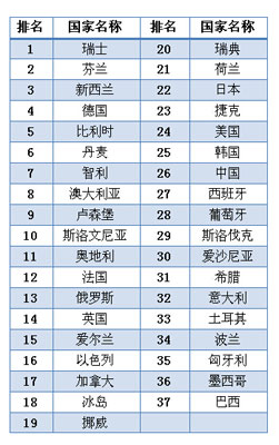 结果显示,职业教育竞争力排名前10位的国家分别是瑞士、芬兰、新西兰、德国、比利时、丹麦、智利、澳大利亚、卢森堡和斯洛文尼亚,排名后10位的国家分别是葡萄牙、斯洛伐克、爱沙尼亚、希腊、意大利、土耳其、波兰、匈牙利、墨西哥和巴西。中国职业教育竞争力排名第26位,处于世界中等水平。(方勇 浦小松)