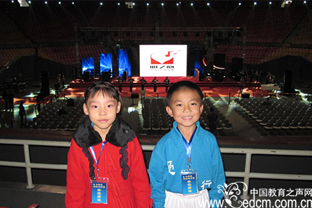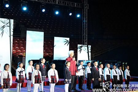 1、我们与著名主持人、朗诵艺术家陈铎爷爷同台朗诵《少年中国说》。