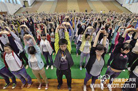 只需5分钟,从头到尾你就会变得很舒服。一旁的班主任老师也不由自主地跟学生做起来。