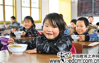 湖南 花垣县边城镇小寨村小学学生在吃免费营养中餐