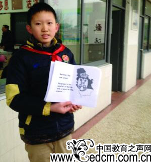 陈迪轩展示塞尔维亚小学生回信的打印稿