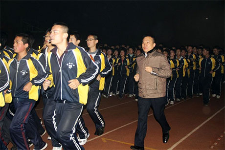 晨光熹微之时,激情的校园便拥有了无限活力,学生们用整齐的步伐、嘹亮的口号迎接崭新的一天。校长的加入,身边“老同志”的榜样力量,更使得二中学子振奋昂扬,士气大增。