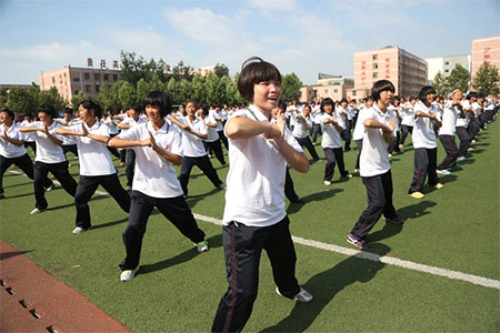“天下第一操”,超强的气场能量犹如江河般波涛汹涌,校园里飞扬起震撼人心的生命激情。