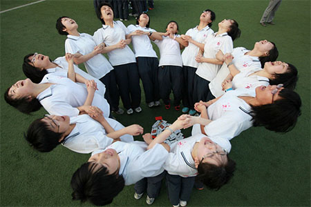 有一种力量叫友谊,有一种美丽叫信任,她们合围成一朵花,面向蓝天,放飞共同的心愿,在二中激情的校园里怒放火热的青春。