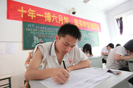 校园中,奋进的激情体现在切实的行动上就会变得“悄无声息”。考场上,学生全神贯注地埋头做题,“此时无声胜有声”,拼搏的激情演绎成笔尖流转的“二中好声音”。