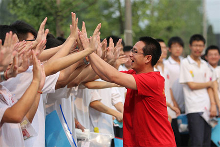 高考前夕,师生击掌加油,双手触碰的瞬间,前行的动力注入内心,自信与从容写在他们的脸上,激荡在校园中。