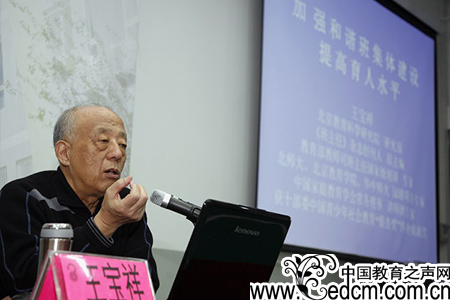 王宝祥教授从班主任的自身修养到班主任专业能力发展;从班集体结构要素到班级体形成的五步骤;从建设办集体的意义到建设班集体的具体方法从理论到实际,深入浅出的给学区全体班主任进行了讲解分析。整个培训过程,王宝祥教授将深厚的理论与鲜活的实际案例,变成其诙谐的话语呈现在全体参训班主任面前,深深打动和吸引了在场的所有人。历时三个小时的培训结束后,所有参训班主任还意犹未尽,纷纷将自己在班集体建设中遇到的问题与王教授进行了深入的探讨。
