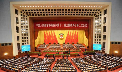 中国人民政治协商会议第十二届全国委员会第二次会议圆满完成各项议程后,12日上午在人民大会堂闭幕。会议号召,人民政协的各级组织、各参加单位和广大政协委员,更加紧密地团结在以习近平同志为总书记的中共中央周围,高举中国特色社会主义伟大旗帜,以马克思列宁主义、毛泽东思想、邓小平理论、“三个代表”重要思想、科学发展观为指导,全面贯彻落实中共十八大和十八届二中、三中全会精神,同心同德,扎实工作,为全面建成小康社会、实现中华民族伟大复兴的中国梦而奋斗。