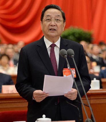 全国政协主席俞正声主持闭幕会。全国政协副主席杜青林、令计划、韩启德、帕巴拉·格列朗杰、董建华、万钢、林文漪、罗富和、何厚铧、张庆黎、李海峰、苏荣、陈元、卢展工、周小川、王家瑞、王正伟、马飚、齐续春、陈晓光、马培华、刘晓峰、王钦敏在主席台前排就座。