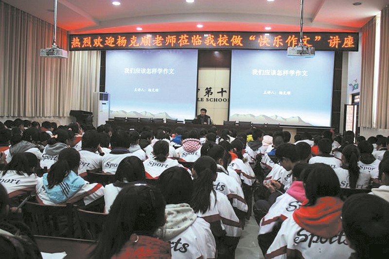 杨克顺受邀到十堰为学生讲解快乐作文诀窍