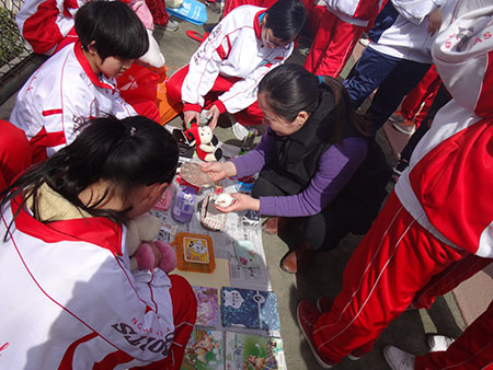 据了解,学生们以小组为单位,各设“战场”,倾尽“私囊”,将家中“挚宝”一一拿来与他人分享。学校领导、各位老师、其他年级的同学也都沐浴着春日的阳光,来到操场投入到这次活动中去。叫卖声、讨价声、欢笑声此起彼伏,人来人往,川流不息,络绎不绝,场面如火如荼。