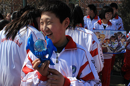 张校长告诉记者,同学们为了“吸引客源”使劲了浑身解数:有的买书送玩具;有的当场演示使用方法;还有的为了销售自己的魔术道具,现场表演起了小魔术……“顾客”们也不甘示弱,讨价还价的、以物换物的、货比三家的……在比肩接踵的人群之中时时传来摊主们兴高采烈的吆喝声,也不乏买主们爽朗的笑声。看着小摊主们都收获颇丰,小买主们也都满载而归。