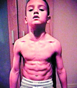 硬朗的线条,结实的肌肉,你能把这些与一名8岁儿童联系在一起吗?爱尔兰男童布兰登·布莱克因酷爱健美运动,练得“一身腱子肉”。