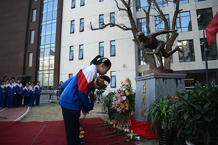 北京市第二十二中学非常看重庄则栋先生拼搏钻研、执着追求的精神。在庄先生患病和逝世期间,二十二中师生表达过真挚的祝愿。恰逢2014年是二十二中建校九十周年,作为校庆系列活动之一,二十二中全体师生希望通过举办庄则栋先生塑像揭幕仪式,能激励一代又一代学生奋发学习,为实现中国贡献自己的力量。(文/刘士坤、二十二中供图)