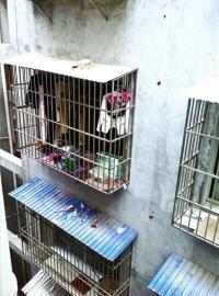 何阳杰的房间紧邻楼梯,与隔壁一栋居民楼距离不足5米。透过对面居民楼的窗口,可以清楚观察到他房间的窗帘已被拉上,阳台上挂着一些衣物。