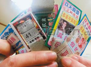 记者花5元钱买了10张卡片,最后只中了一个五角钱。揭开卡片刮奖区,里面有的印有人民币图案,有的印有汉字。现场有小学生说她最多中过5元钱。记者问到女老板这些卡片从哪里进的货,对方支支吾吾地说:“我也不知道,都是人家过来问我们要不,要的话会送上门。”