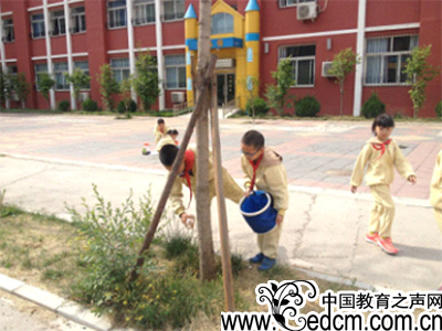 北京教育学院丰台分院附属学校三(1)中队的队员们,利用少先队活动课时间,在辅导员刘玉琳老师的带领下,开展了“绿化校园”活动。队员们不但为校园里的树木浇了水,并且亲手制作了“爱护小草”的提示牌,在实践活动中感受我国古老节气的奇妙。在劳动中队员们还背诵了《二十四节气歌》,体会到我国古代劳动人民的伟大智慧。(殷永媛)