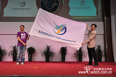 区教工委副书记董健向青年教师研究会授会旗