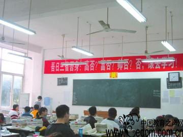 有的学校既有“宝剑锋从磨砺出,梅花香自苦寒来”这种传统含蓄的标语,也有“只要学不死,就往死里学”、“天下无D,人人有A”的雷人标语,可谓“中西合璧、雅俗共赏”。