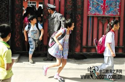 昨天中午11点半,奶西村育慧小学到了中午放学的时间,两名保安守在校门外,学校大门紧锁,只打开小门,不少家长走到小门门口,看到孩子,便牵着手接走。