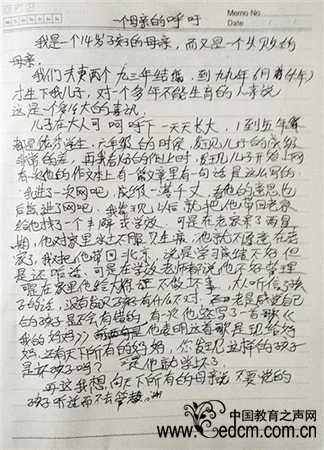 28日晚,杜女士半夜起床写了一封信。信中,杜女士写道:“我想向天下的母亲说,不要觉得孩子听话而不去管教。”