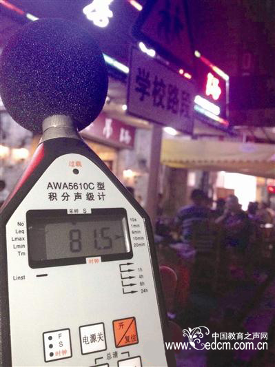 在现场,记者用专业的手持积分声级仪在一家排档旁进行了测试:5分钟时间里,声级仪显示的指数均超过74分贝,瞬间最高值达到81.5分贝。
