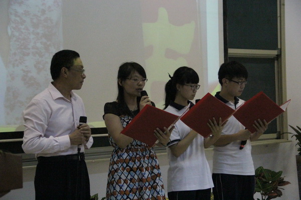 典礼上先由惠老师、程老师、 鲍印飞、李俊梅同学带来了诗朗诵《我们毕业了》,伴随着各班三年来的生活点滴视频,在场师生都沉浸在对高中三年的无尽回忆中。轻轻的来,轻轻的走,不带走云彩,却满载着重重的感恩和深深的敬意.学生代表石琳的发言说出了全体学生的心声。