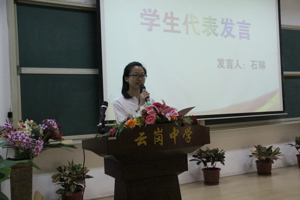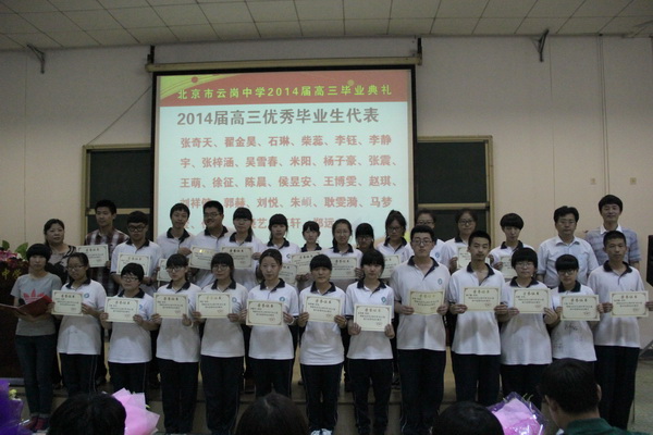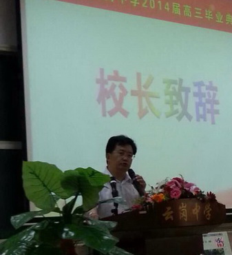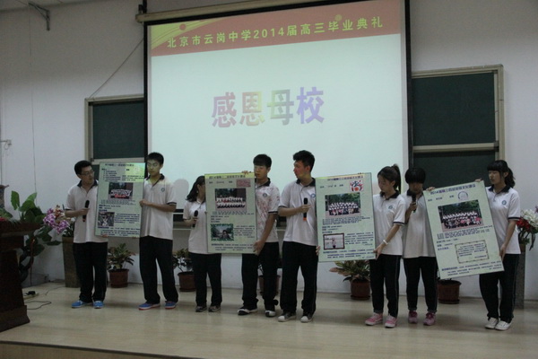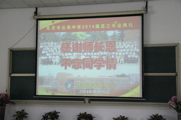 2014年6月4日下午,云岗中学举行了主题为“感谢师长恩,不忘同学情”的2014届高三毕业典礼,云岗中学的校领导、高三年级全体师生及全体学生家长参加了此次毕业典礼。 毕业典礼在一曲师生合唱的《同桌的你》中拉开了帷幕。整个典礼分为“旅程的回忆”、“感恩的心怀” 、“崭新的未来”三个篇章。
