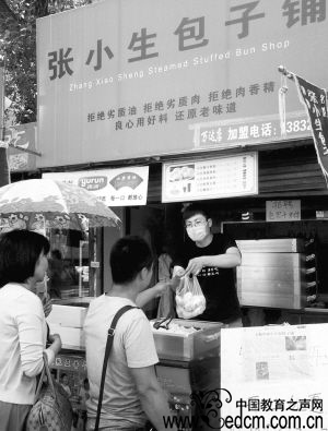 包子好吃还得会吆喝。张亚普作为一名营销专业的大学生在如何扩大销路上还是动了不少脑筋,比如“父亲节”送男顾客包子,印制“张小生包子”包装袋,与电影院合作将电影信息贴在袋子上,为每天辛勤工作的环卫工人送热包子……