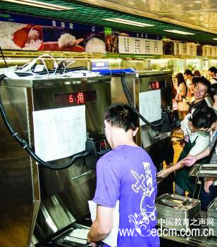 “现在的两台是样机,不是正式的产品,试用一个月。”华南理工大学饮食服务中心副经理邱具庆介绍说,预计到下学期,华工的所有食堂里,包括大学城校区,都将根据就餐人数,配备4-6台不等的自动售饭机。