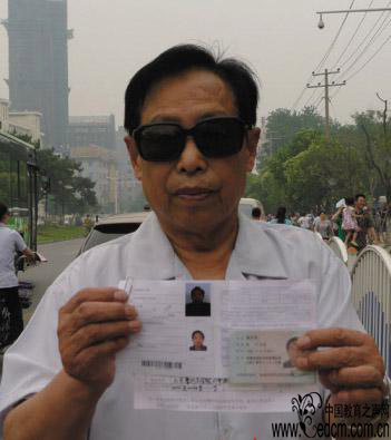 姚克亮,今年80岁,是安徽年龄最大的考生。2012年,第一次参加高考时,姚克亮只考了63 分,今年是他第二次参加高考,目标依然是北京大学。尽管成绩一般,但姚克亮却说,他只认北大,非北大不上。