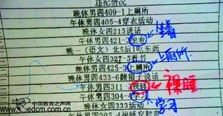 其中一位毕业生认为,这些违规单看起来严苛,但也确实有理由。“比如午休,大家都睡,你扰乱别人不合适,不睡觉也不利于下午学习。”