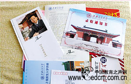 考生在收到上海交大录取通知书的同时,还将收到校长送给他们的一份特殊礼物——一本古朴、典雅的线装书《大学对你说》。共分6个篇章,分别是“‘交通’为名,‘大学为道’”、“闻道、问道、悟道”、“成长于交大、服务于国家”、“立德、立功、立言”、“在成长中选择坚守”、“坚持真理,追求科学”。