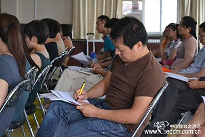 学生家长正在认真做着笔记