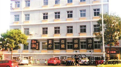 昨天下午,记者来到位于东五环外的通州区北苑小学,该小学正门位于北苑南路东侧,正门附近并没有足疗按摩店的“身影”,沿着北苑南路往北走到其与玉带河西街交汇处,沿着玉带河西街向东走160米左右,在道路南侧看到一栋四层白色红顶临街小楼,在小楼的半地下室位置,有一家名为和润盲人按摩的店面,在1楼窗户附近依次悬挂着五块醒目的店面招牌,其中一块写着店名,另外四块招牌分别写着“足疗”、“保健”、“按摩”、“治疗”的字样。这家按摩店内有大约十几名工作人员以及十几间房屋。