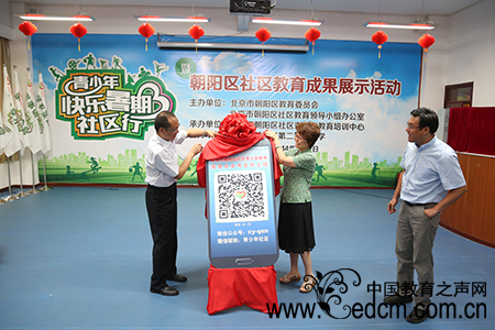 当天的“青少年快乐暑期社区行”社区教育展示活动对2013年学校教育资源面向社区开展社区教育服务成果进行了展示,并举行了社区教育微信平台上线揭牌仪式。