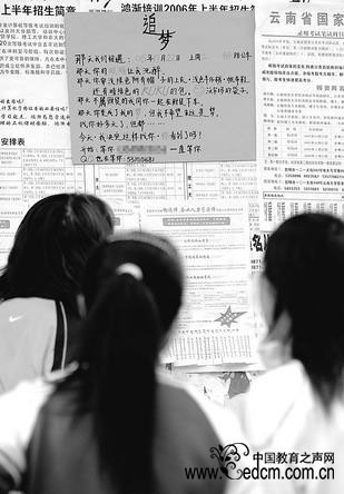 从粉红色的“追梦”广告上得知,在11月22日的那天,他在乘坐的84路公交车上看见一个美丽的女孩,“那天你的眼睛,深深地让我沉醉”。为了“寻梦”,他找了女孩好多天却一直没有踪影。于是,他便大胆地开始“追梦”,在校园里张贴出“求爱信”以寻找这个令他魂不守舍的女孩。在“追梦”广告下面,这个男子还大胆地写上了自己的手机号136××××8533和QQ号531×××81。