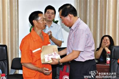 昨日上午,帮助找回法学教授李希慧的环卫工刘小军领取了校方发放的5万元奖金。