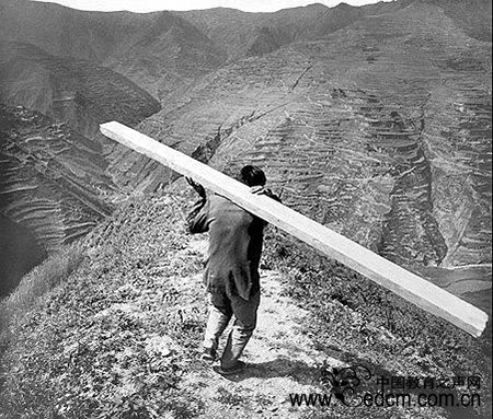 王世明“出名”,是因为一张黑白照片。崇山峻岭之间,一个人扛着一根几十斤重的木头回家。他的眼前,几乎没有路,只有弯弯曲曲的羊肠小道。这根木料是建完学校后剩下的,因为代课教师工资低,村民们便把这根木料送给了他。
