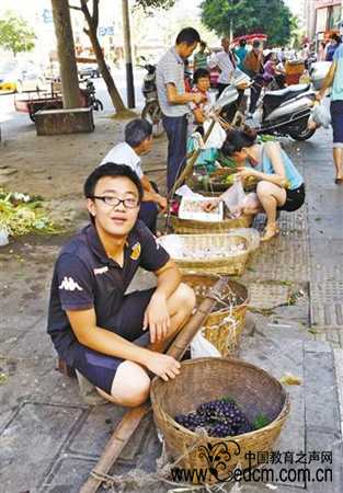 “我觉得年轻啥子都可以尝试,赚点生活费也是好的。”夏刚说,他马上要上大学,要花父母很多钱。填完志愿后,他就借来一双箩筐、扁担做起了小本生意,不仅赚钱,还学会与人打交道。