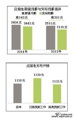 报告显示,2014年应届生平均起薪为2443元/月,相当于半部苹果手机,但也比2013年增加了324元,其中一线城市薪资水平领先,像北京为3019元。而酒店管理类专业虽然就业率很低,但是平均起薪却最高,为2900元;物流类专业在就业率和薪酬水平方面均名列前茅,成为很有前景的专业,它的平均起薪为2875元;电气自动化专业排名第三,平均起薪为2842元。而排名最后的三类专业分别为汽车维修类、旅游管理类以及环境科学类,他们的平均起薪在2000元左右。