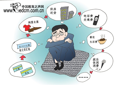 面对记者的采访,23岁的代俊峰不好意思地摸了摸头,对于第一个月工资入不敷出的现象,他显得有点不好意思。工商大学毕业的他目前就职于重庆电视台。他搓了搓双手说,向父母借的钱以后一定会加倍还给父母。